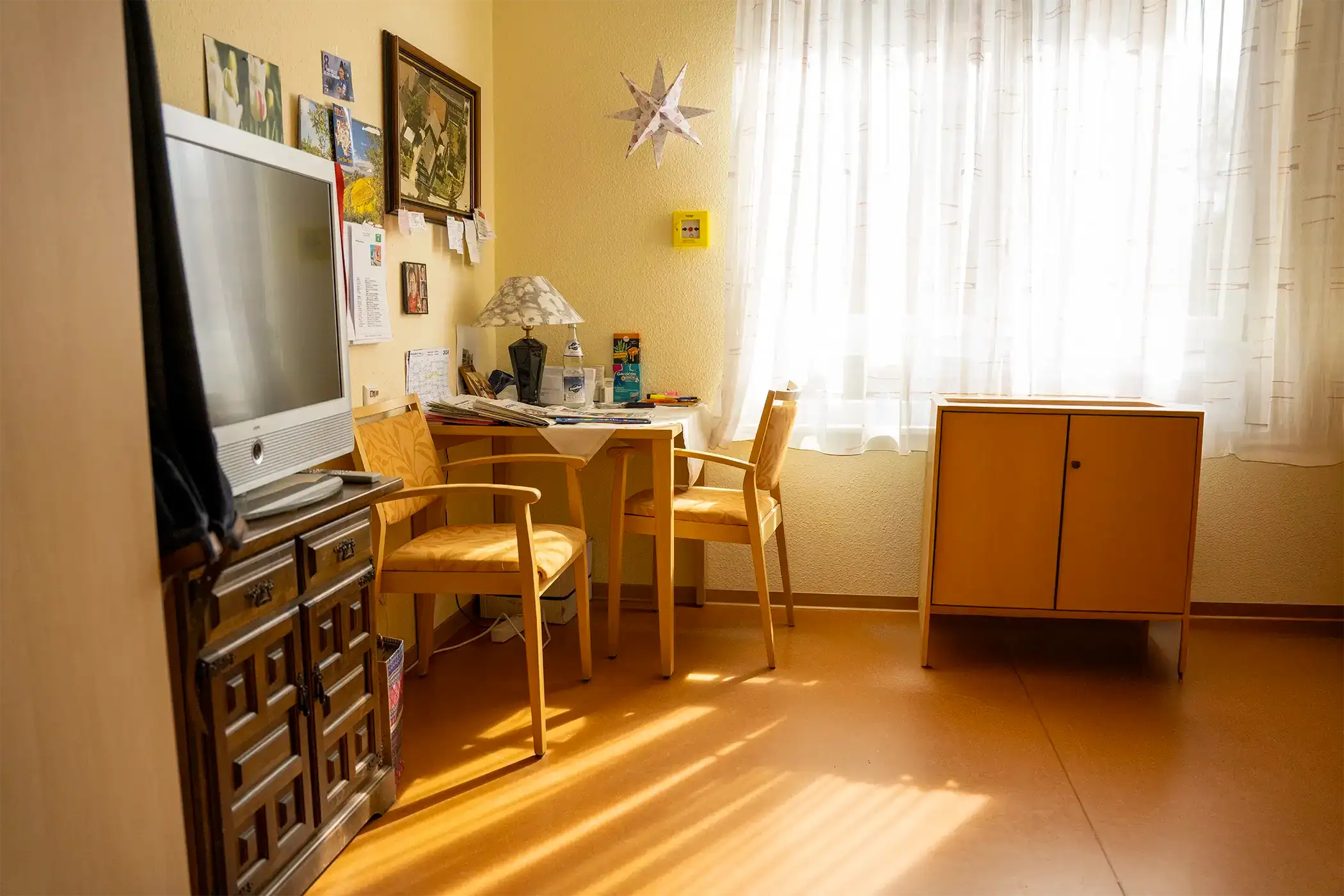Die 78 Einzelzimmer sind hell, großzügig und entsprechen modernsten Pflegestandards – mit Größen zwischen 20 m² und 30 m², deutlich über den gesetzlichen Vorgaben von 15 m². Auch Paare finden bei uns Platz: Für sie bieten wir zwei nebeneinander liegende Zimmer mit gemeinsamem Badezimmer.